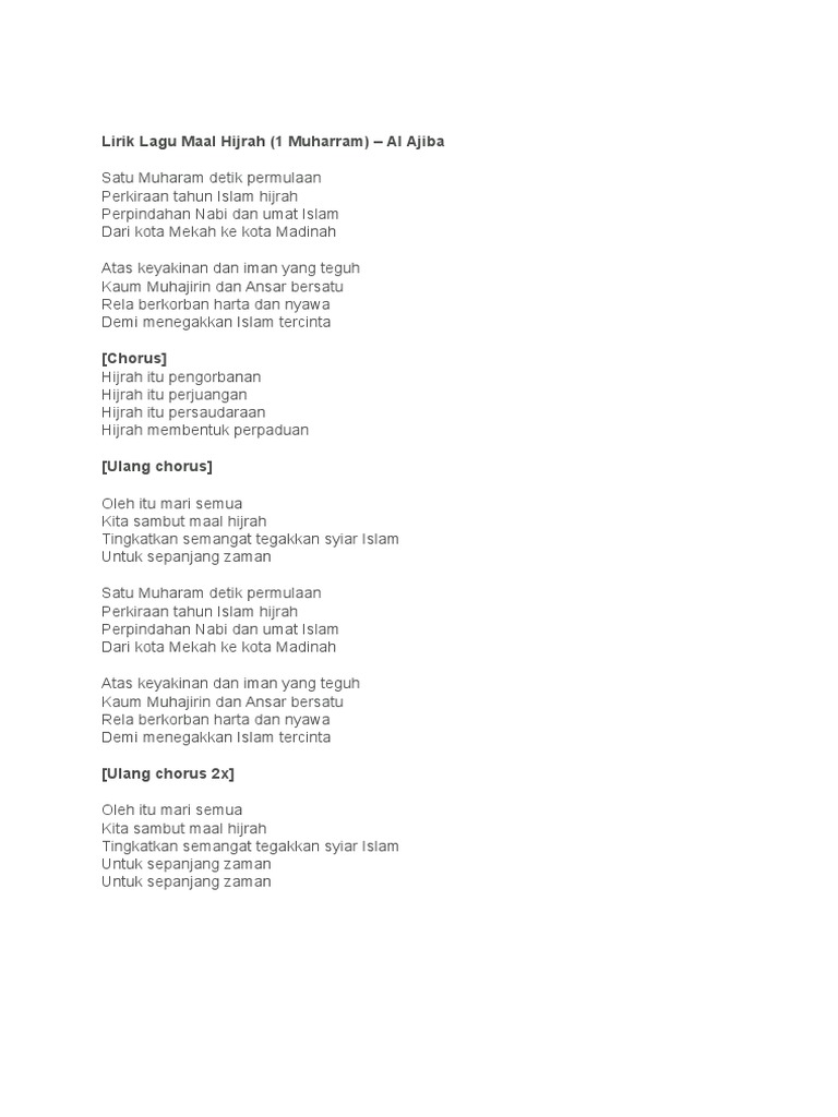 Tingkatkan semangat tegakkan syiar islam untuk sepanjang zaman. LIRIK LAGU MAAL HIJRAH Satu Muharam detik permulaan Perkiraan tahun Islam hijrah Perpindahan Nabi. Lirik lagu maal hijrah 1 muharram al ajiba.